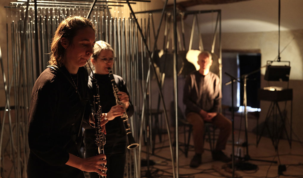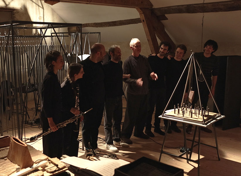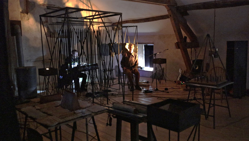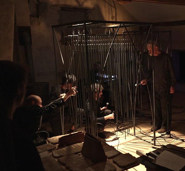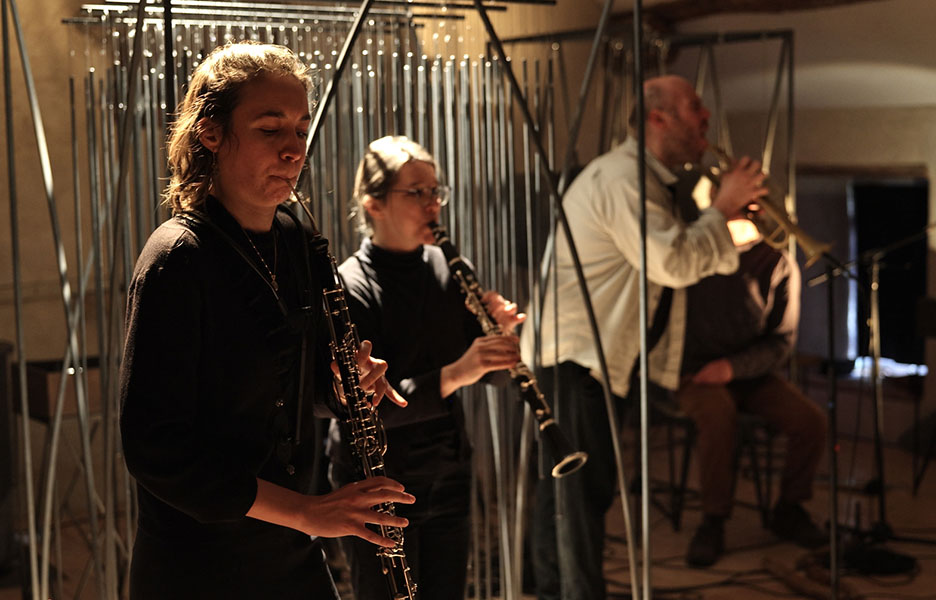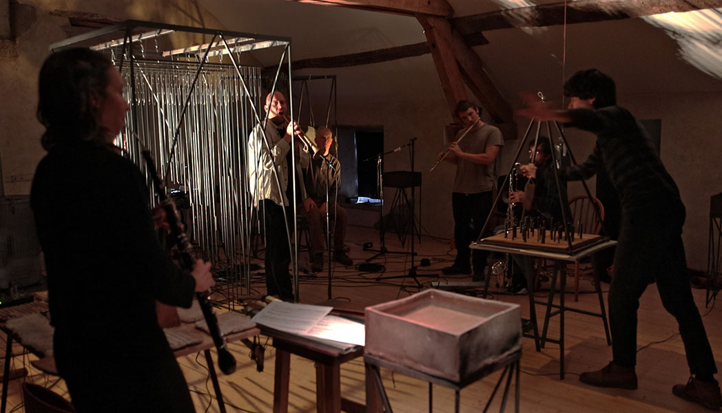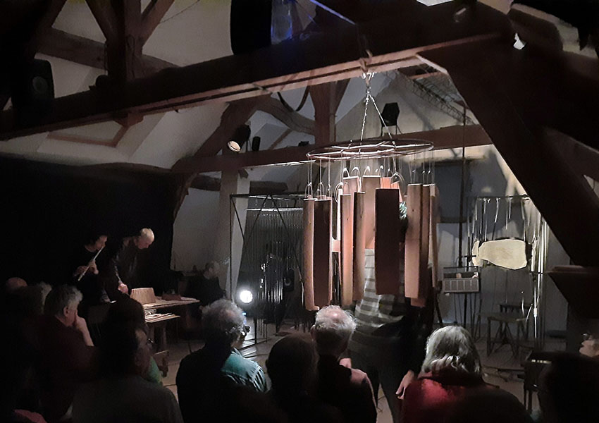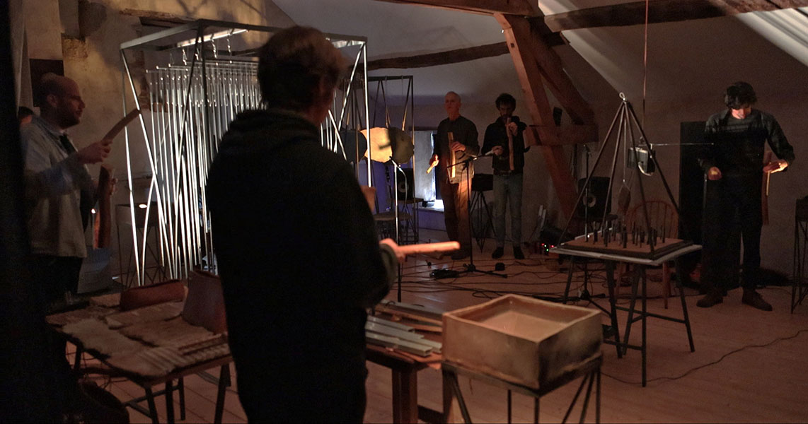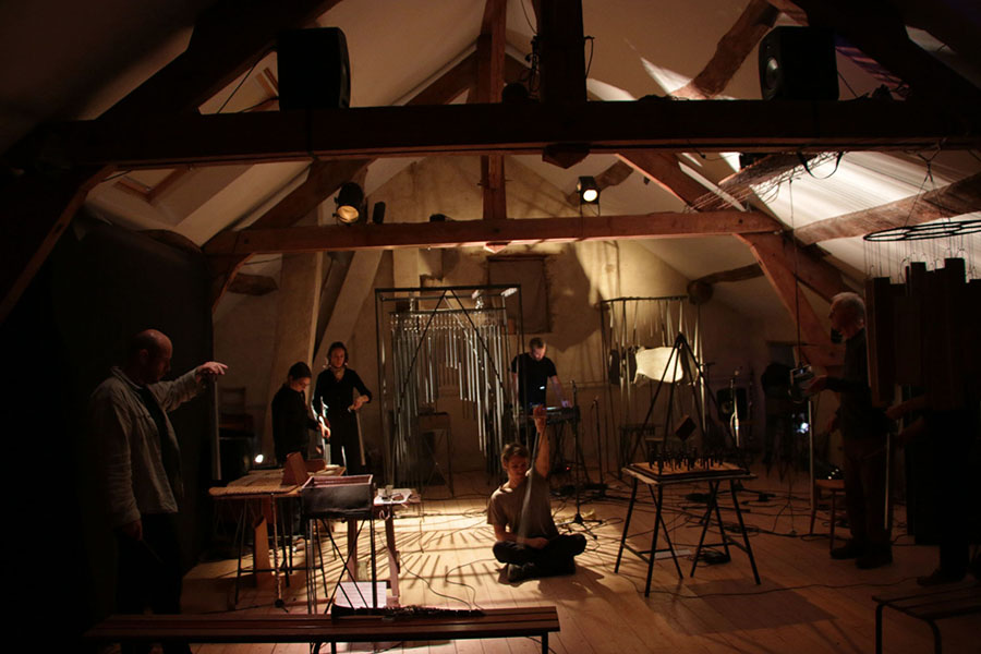 rencontre entre les sept musicins de liken, une éclairiste et mes sculptures sonores